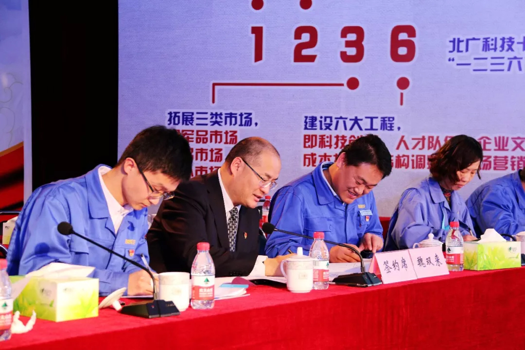 董事長要求北廣科技要深刻認識習近平新時代中國特色社會主義思想是做好各項工作的思想綱領和行動指南,深刻認識我國經濟轉向高質量發展階段的重大意義和深遠影響,深刻認識深化國企改革對推進我國經濟高質量發展具有重要作用,深刻認識堅持黨對國有企業的領導是重大政治原則。圍繞“轉型發展、創新發展、融合發展、開放發展”,做好產業定位、高效利用資源、解決關鍵問題、加快轉變思想,打贏北廣科技“解困突圍、提質增效、轉型發展”三大攻堅戰,為實現“十三五”戰略目標而努力奮斗!