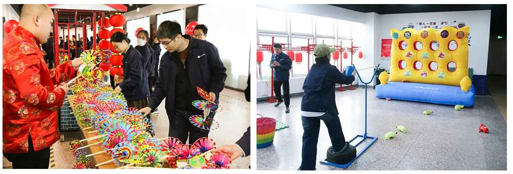 感受民間藝術(shù)、品嘗傳統(tǒng)美食、體驗趣味游藝。本次新春游園活動共設(shè)置了“大錘機”“憤怒的小鳥”“激光打氣球”“投籃比拼”“抓娃娃”“手工風車”等11個環(huán)節(jié)。豐富多樣的游藝形式吸引著大家匯集在各個游園項目前進行體驗,歡笑聲此起彼伏,處處洋溢著歡樂和喜慶的氛圍。