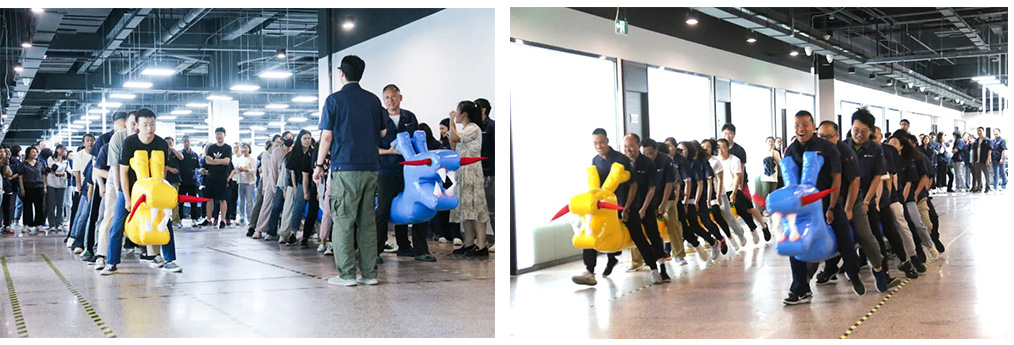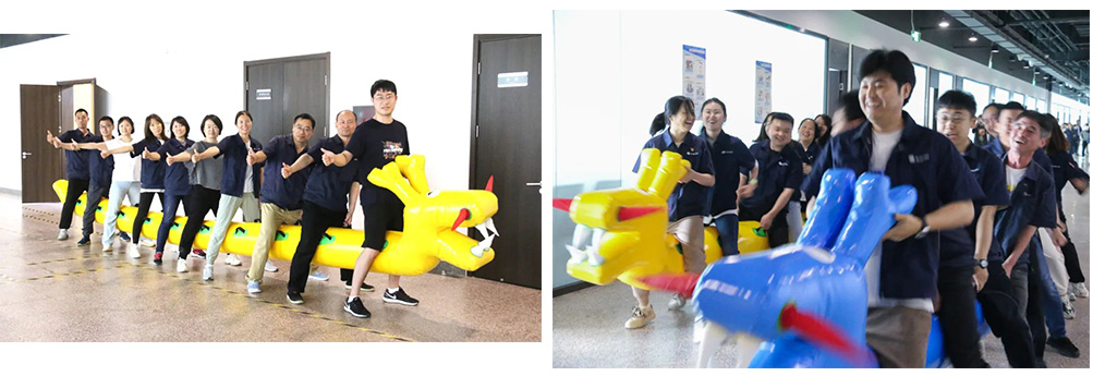 隨著艾葉飄香的端午節(jié)悄然臨近,公司工會(huì)組織開(kāi)展了一場(chǎng)別開(kāi)生面的50米10人旱地龍舟大賽。隨著裁判哨聲響起,沉睡的“巨龍”如離弦之箭飛奔而出,伴隨“左右、左右……”的口號(hào),大家以腿為槳,以手為舵,人舟共進(jìn)。15局激烈的對(duì)決,每一刻都讓人心潮澎湃,伴隨著觀眾們的歡呼聲,整個(gè)賽場(chǎng)仿佛變成了一片歡樂(lè)的海洋,每一個(gè)人都被這種氛圍所感染,沉浸在這場(chǎng)龍舟賽的盛宴之中。
